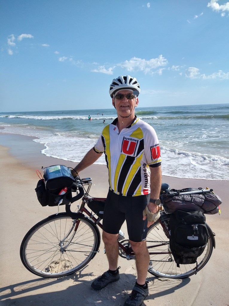After years of imagining what it would be like to ride across the country, I was about to find out. Accompanied by my sister and son, we arrived at Vilano Beach just before 9:00 AM, amid dozens of Memorial Day vacationers swimming and soaking up the Sun. Pictures were taken and after dipping my back tire into the Atlantic, it was time to go.