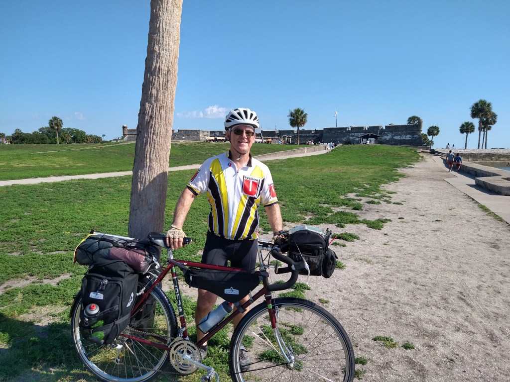 I didn’t get far. The official starting point for the route I was on is the west end of the Lions bridge in downtown Saint Augustine. Since the city doesn’t lie directly on the Atlantic, Vilano Beach was chosen as the departure point to give me official bragging rights about riding “Coast to Coast”. About 3.5 miles after beginning to turn the pedals, I stopped for another round of pictures at Castillo de San Marcos, then Ishmael and I were alone.