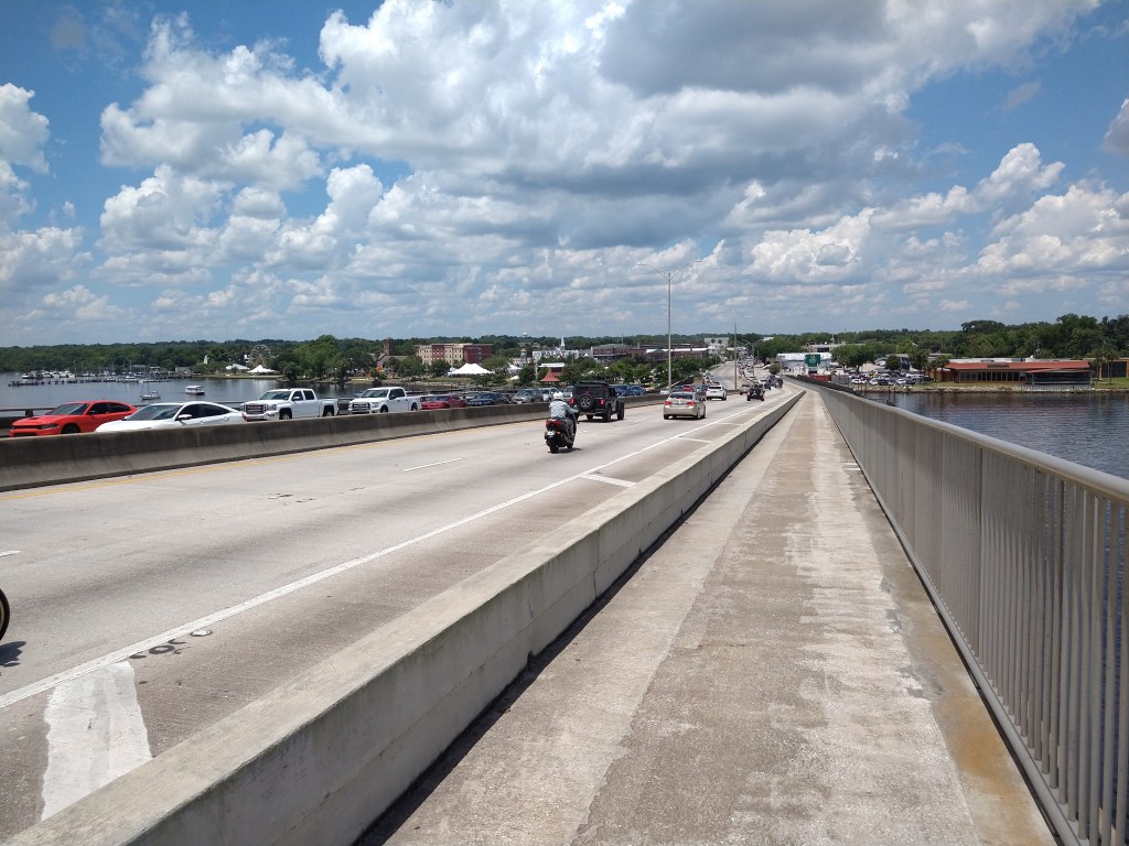 Palatka, which sits beside the Saint Johns River, was the first significant town after leaving Saint Augustine thirty miles earlier. I crossed the bridge over the river, which was guarded by a forgotten World War One veteran armed with a grenade. He let me pass without a word.