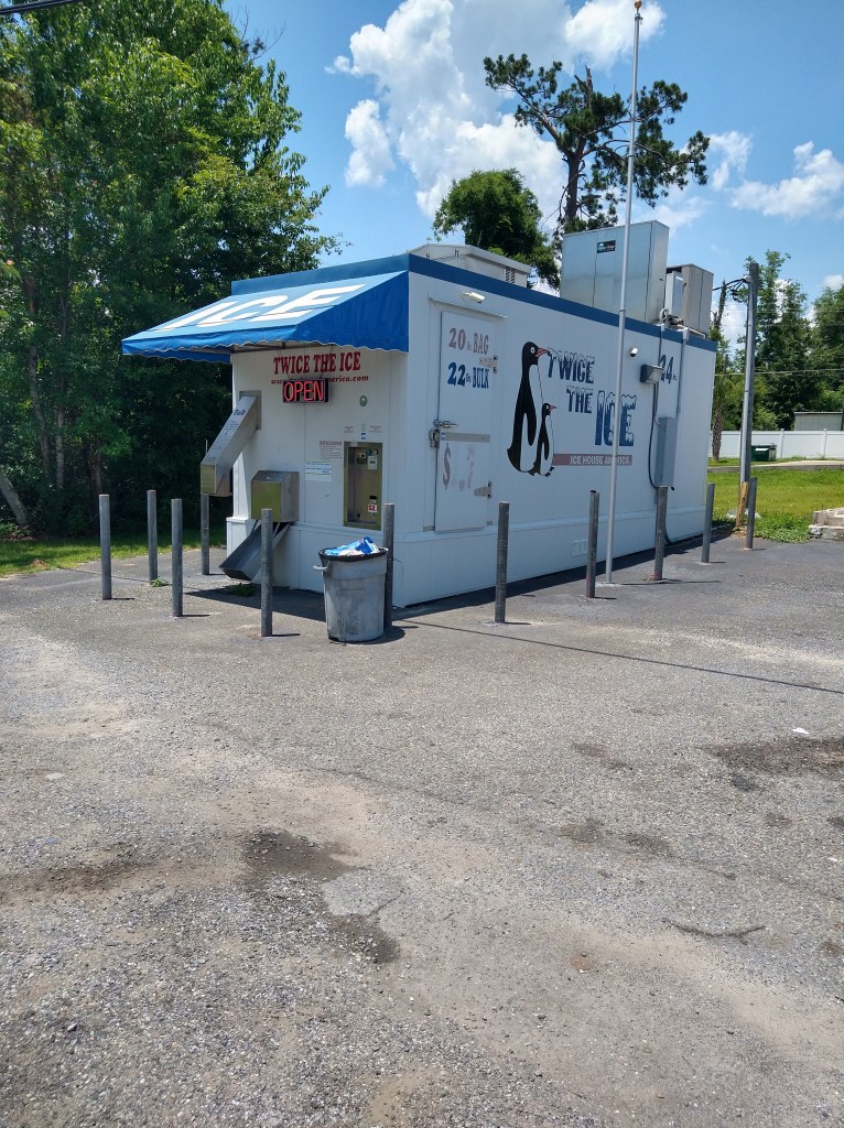 To have a need for a massive ice dispenser like this is impressive, and they’re all over the place in north Florida. Whether people are cooling fish or beer, I don’t know, but selling ice must be fairly profitable to justify this contraption.