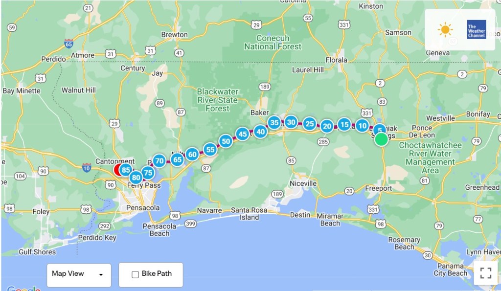 DeFuniak Springs, Florida to Cantonment, Florida – 85.4 Miles