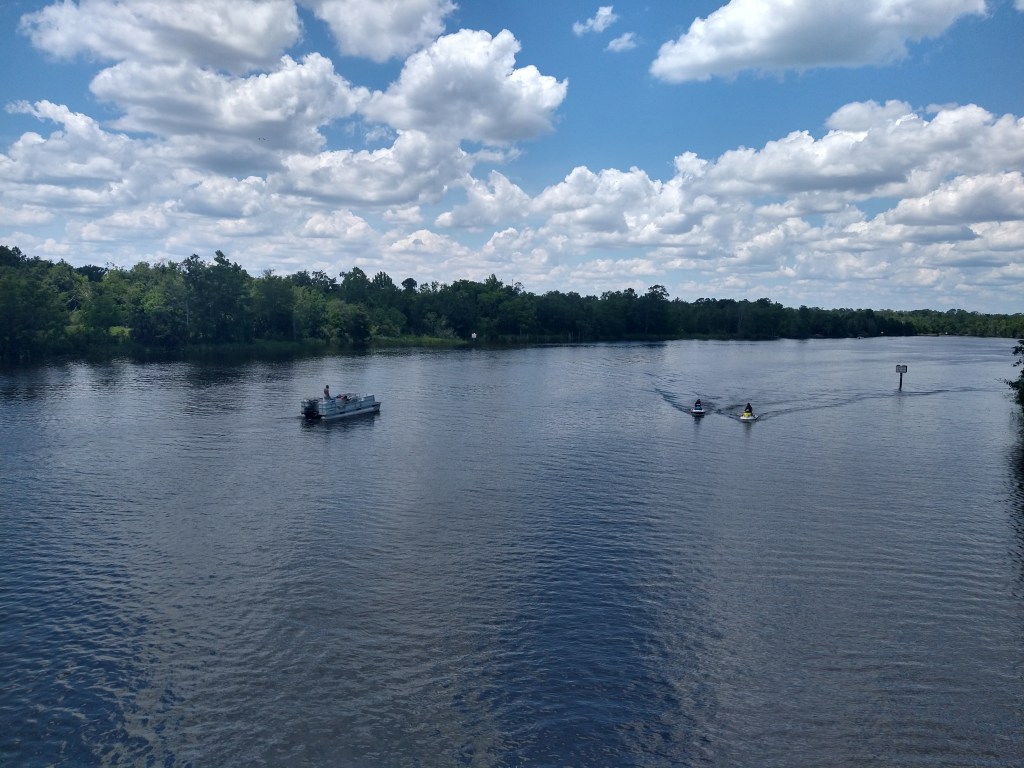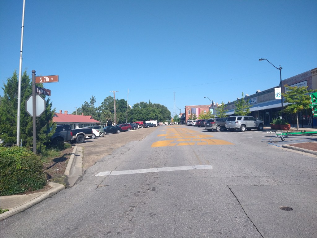 Traffic was heavy in town this morning, possibly due to the proximity of the Gulf Coast nearby. So, I hit some of the side streets I’d used getting to the hotel the day before and rode to the center of DeFuniak Springs. There was a farmer’s market taking place on the main street and several early risers jogging or hiking around the lake.