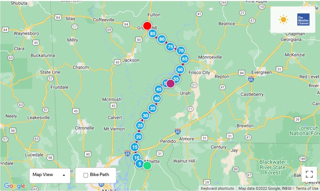 Bay Minette, Alabama to Grove Hill, Alabama – 88.5 Miles