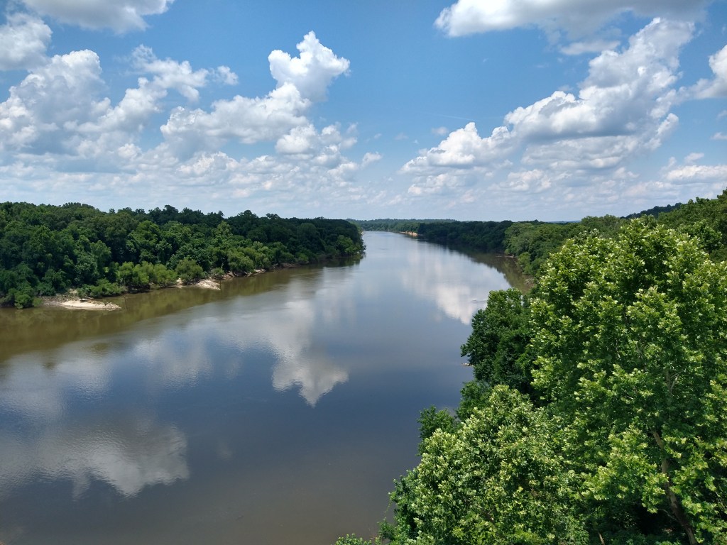 After more pedaling in the heat, it was time to take another break at Perdue Hill. Behind me is the road I took, which drops significantly towards the Alabama River. As I descended the hill I could have easily hit over 40 mph, but trucks and the positioning of the rumble strip had me on the brakes the entire way. Getting out of control with a loaded bike can happen quickly, so I’m cautious whenever I’m in a situation that might lead to a wipe out.