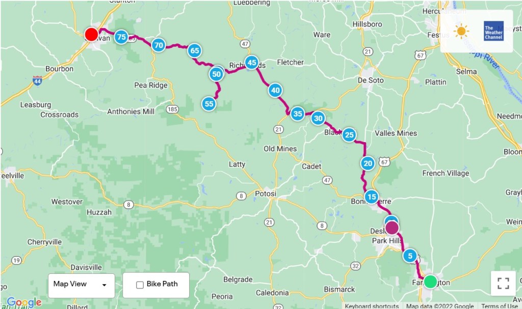 Farmington, Missouri to Sullivan, Missouri – 77.9 Miles