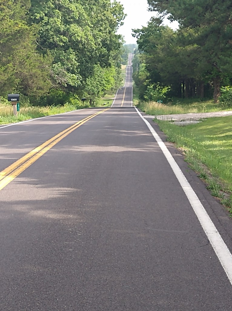 Climbing hills can be fun. On a gradual uphill, in the right gear, it’s almost indistinguishable from riding on flat ground. The effort put into the pedals is low and the speed is acceptable. These are the kind of climbs I’ve encountered most riding on 4-lane highways. Elevation differences on highways are smoothed out, and what’s left is a road that’s not too extreme, up or down. On the back roads of Missouri, it’s different.