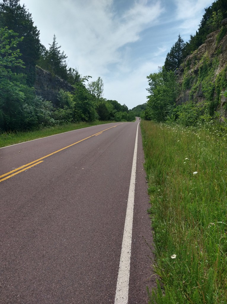 As I mentioned in an earlier post, flat roads have been a rarity since I left the southernmost part of the state. As I ride, I’m either going up or down constantly. The downhill sections can occur at any time, although I have a general idea that something might happen based on how much climbing I’ve done over the past several miles.
