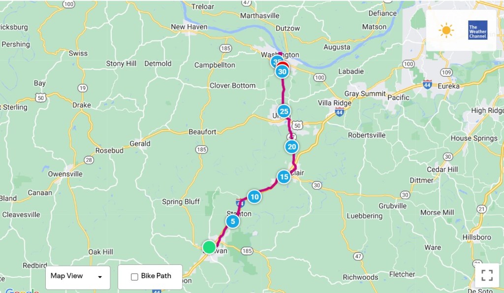 Sullivan, Missouri to Washington, Missouri – 35.5 Miles