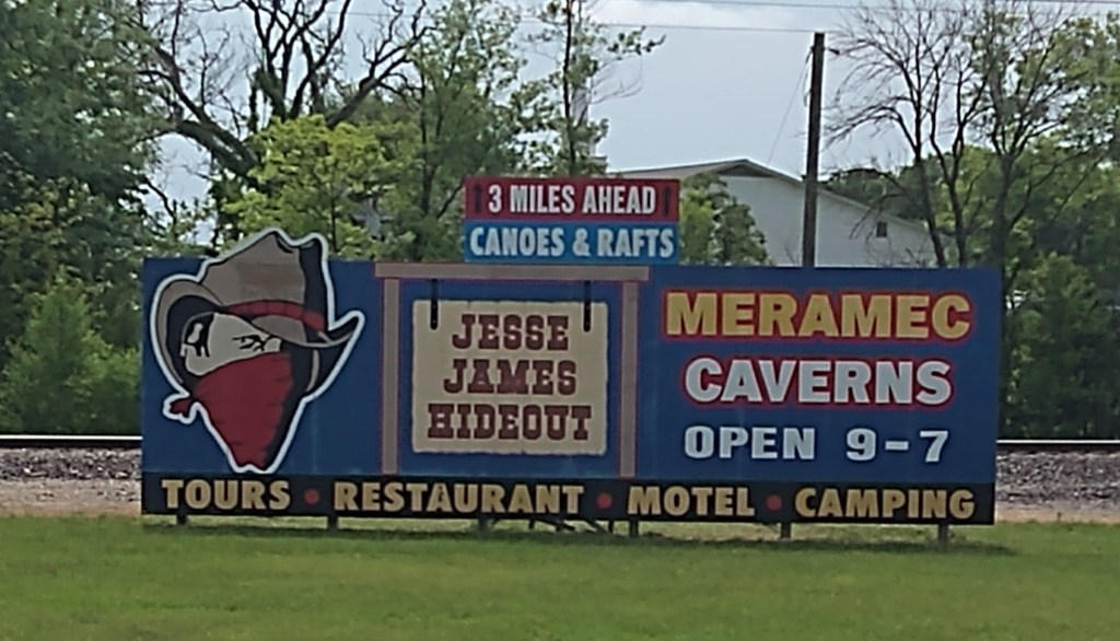 I wasn’t on Route 66 long before I met up with one of Missouri’s famous citizens. Though he’s been dead for 140 years, he’s still earning a profit for present day Missourians, who are happy to tell you about him for cash. While I didn’t get a picture of the “Jesse James Wax Museum”, that promised to tell the “Untold Story”, there was a sign advertising his hideout nearby.