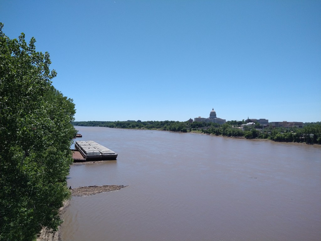When I’d finished my malt, the guilt made me feel I’d better start moving Ishmael from “A” to “B”. Cycling away from the Capitol, we crossed the Missouri River.