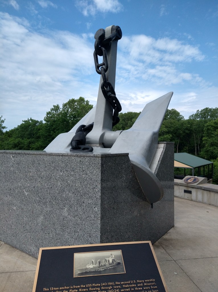 Platte City is a typical town for the region. Near a park they have an anchor from the Navy Oiler U.S.S. Platte, of which there were three throughout history.