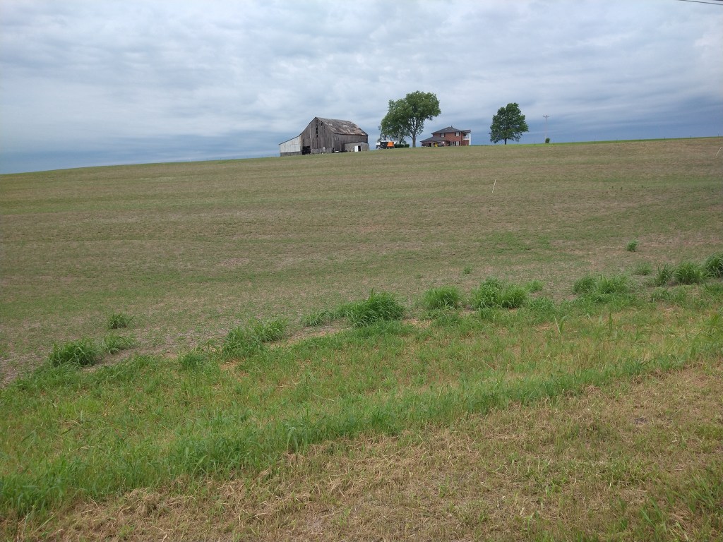 I ate lunch in town, then started riding towards Achison, 17 miles away. There was a light rain falling, but the road had a wide shoulder, so it was safe. The only issue was passing semi-trucks would blow a spray of mist at me as they went by. I got used to it. Finally, I saw signs of change.