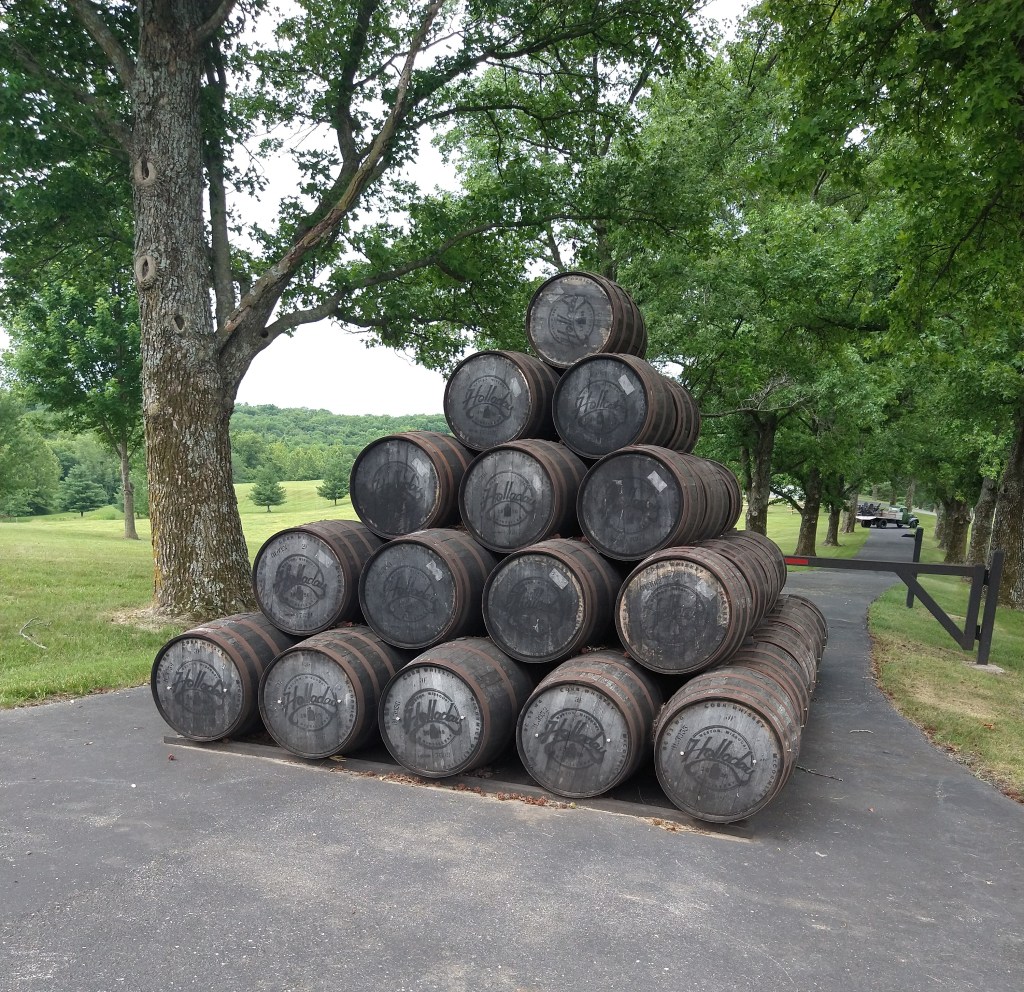 This stack of barrels alongside the road was evidence that moonshiners were in business nearby. They grow corn in Missouri, plus other grains, so Holladay Distillery has been making bourbon since 1856.