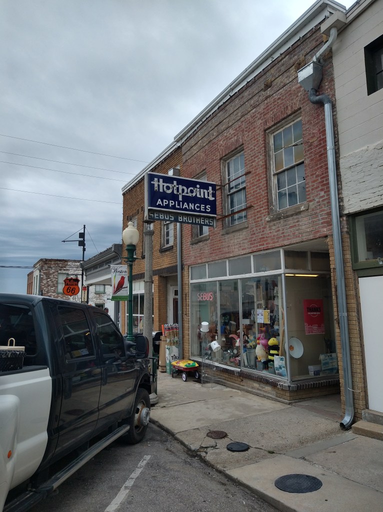 I found the hotel quickly, checked in and dried out. Achison is a farming and railroad center and is also the birthplace of Amelia Earhart. The song “On the Achison, Topeka and the Santa Fe” gave the town some fame when it came out in 1944.