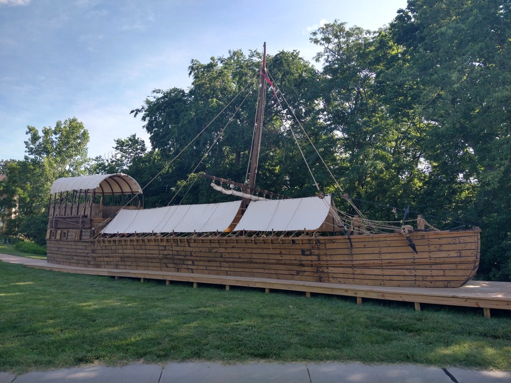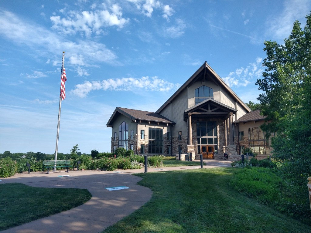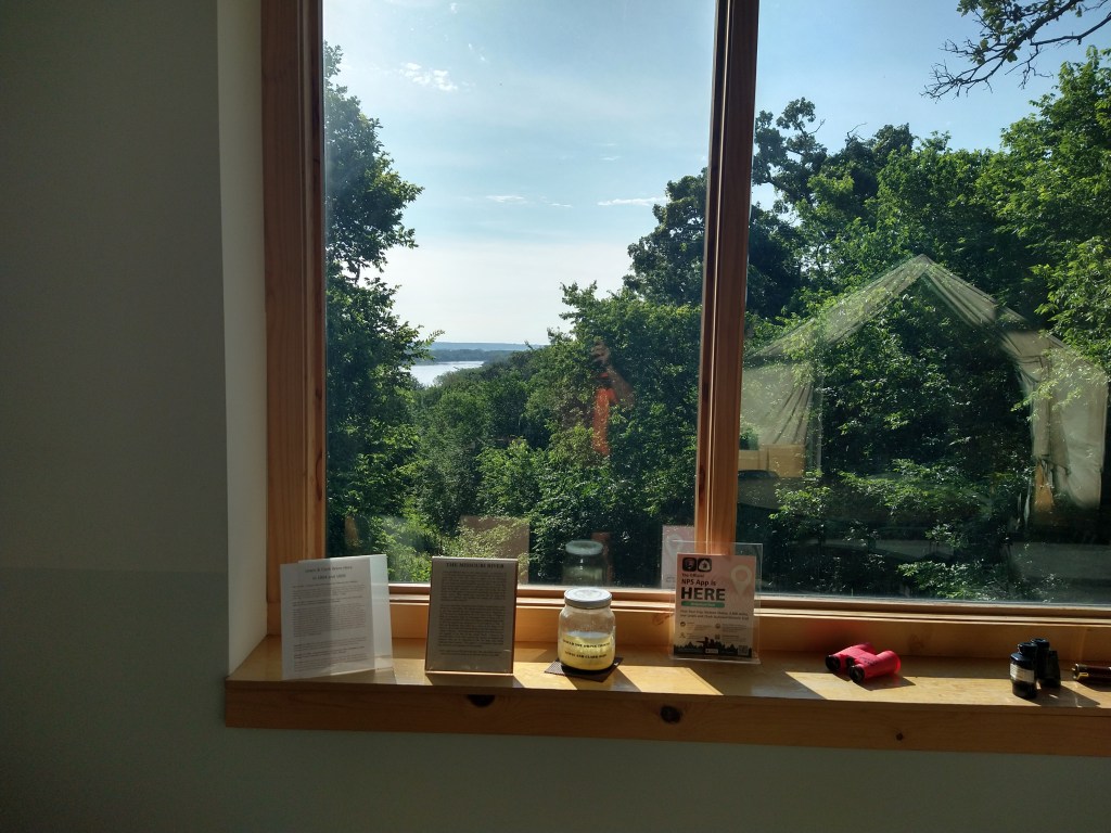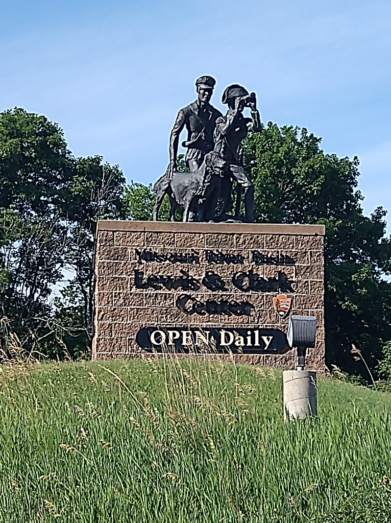 A review of the map the night before showed very few supply options between Nebraska City and 35 miles up the road. So, I spent 20 minutes in the morning pedaling to a store to load up. That four-mile roundtrip led to something I hadn’t planned on. Nebraska City has a Lewis and Clark Interpretive Center that teaches the history of the expedition from their time in the area and overall. As I passed the entrance on my way out of town, they were set to open at 9 and it was 8:56. It would have been pointless to have gone by without a look, so I pulled in. At that time, I was the only customer and had the place to myself for the half-hour I stayed.