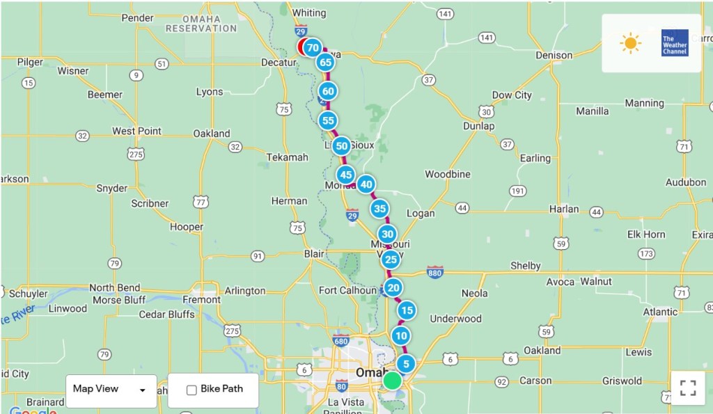 Council Bluffs, Iowa to Onawa, Iowa – 70.4 Miles