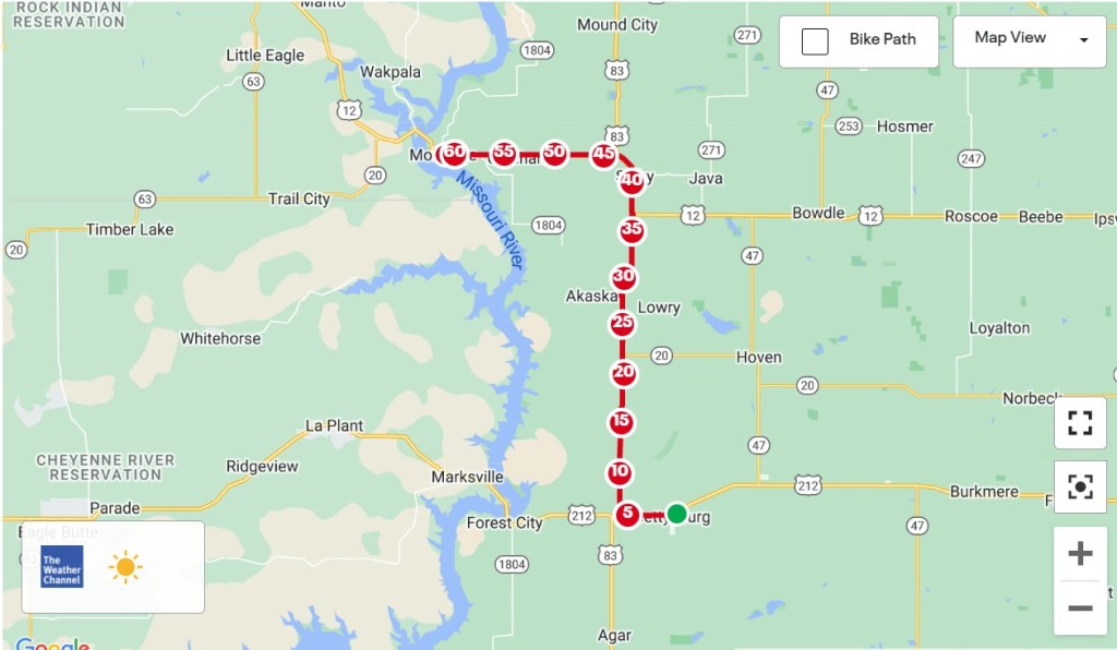 Gettysburg, South Dakota to Mobridge, South Dakota – 60.5 Miles