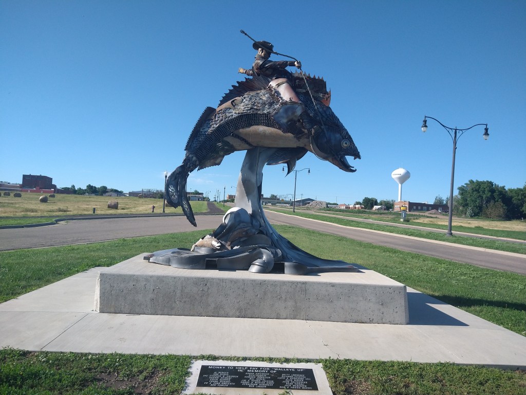 People like cowboys, rodeos and fishing here. This statue tells the tale.