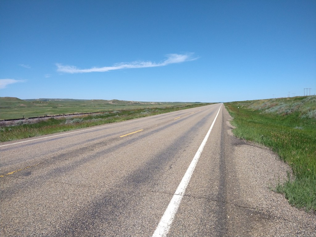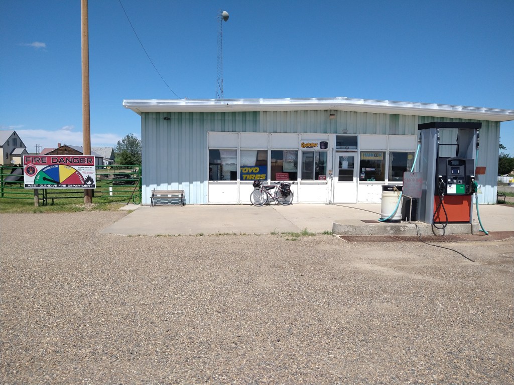Halfway between Glendive and Circle is a collection of buildings called “Lindsay”. The had a convenience store according to my map, and I was ready to rest and replenish my supplies when I got there. That goal kept me motivated as I rode against the wind, but when I pulled into the place it was closed. Not open on Sunday. Fortunately, I’d stocked up on water and snacks before leaving Glendive, because I knew Lindsay was the only stop in between. I sat on the bench outside the store, ate lunch and thought about the ice cream sandwich I’d just missed.