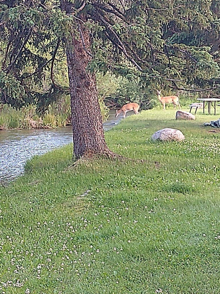 I found the campground at the edge of town and pitched my tent next to a stream. A group of 5 deer gathered there for a drink and then headed back into the woods. They showed up again later and apparently have no fear of people. I didn’t feel like walking back into town for dinner, so feasted on Teriyaki beef jerky and trail mix. It was enough.
