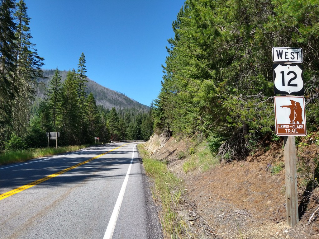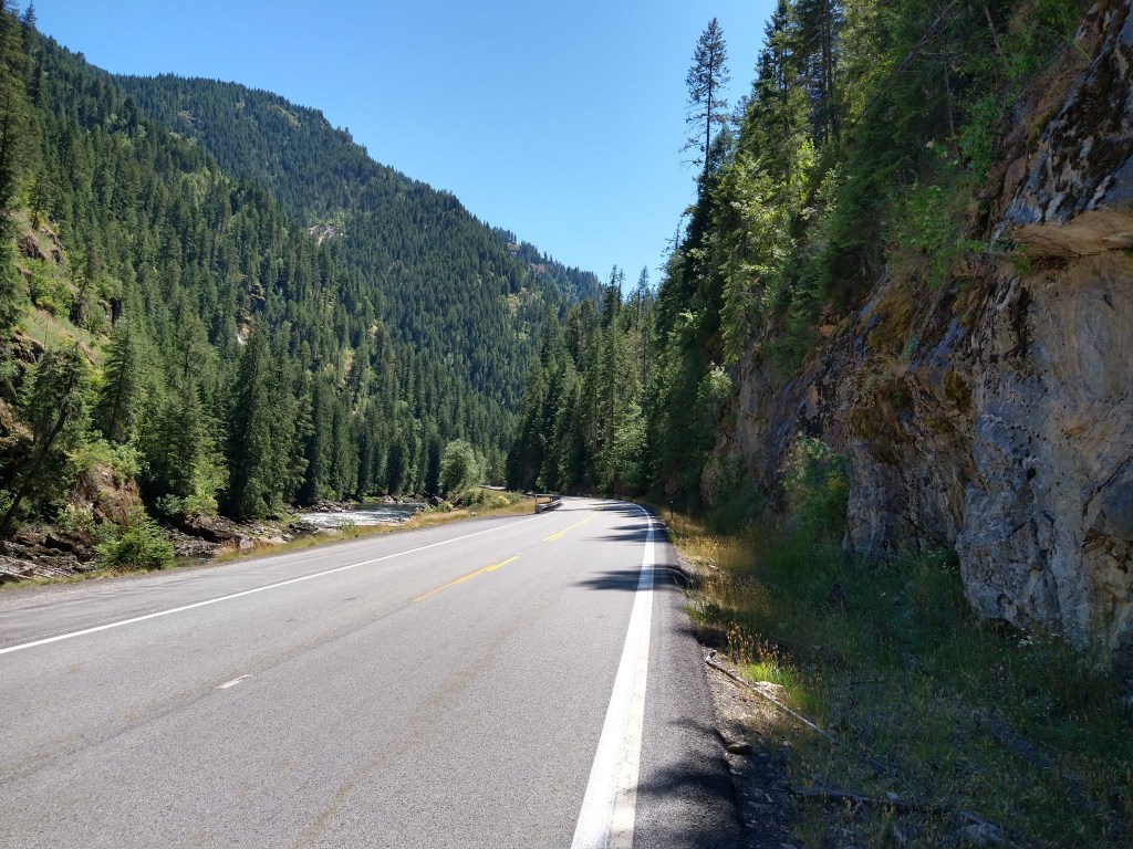 There were three components to the scenery today: Trees, the Lochsa River and mountains. That’s it. As beautiful as it was, it was difficult not to take the same picture in many different places. Experiencing it in person is wonderful but looking at what appears to be the same scene over and over may not be that entertaining to this audience. What I’ve posted will give you an idea of what’s there, but you’ll have to come to Idaho to appreciate it fully.