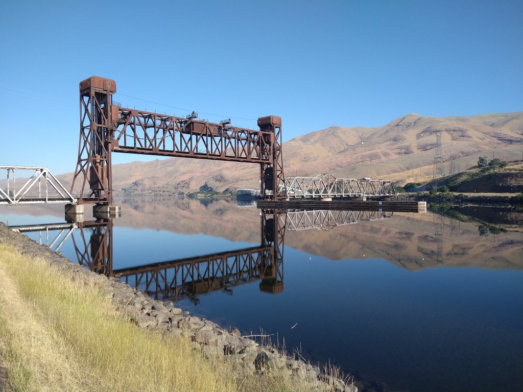 The route out of Lewiston took me along the banks of the Snake River, where early risers were jogging, hiking or walking their dogs. Compared to the Lolo Pass a couple of days ago, the number of man-made objects had increased substantially, which gave me more subjects for pictures.