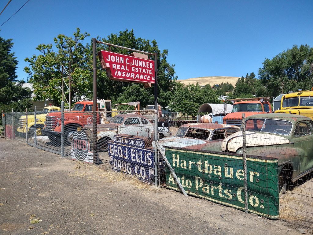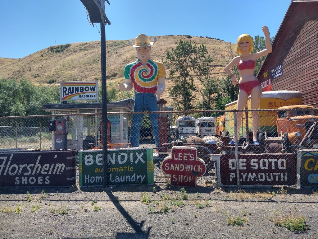 My expectations for Pomeroy were only food and water. It’s difficult to tell by a brief map description what might be found in any town, but the basics are expected. I’d mentioned a few days ago how much I enjoyed a model of a large steer used as advertising for a local business. Pomeroy was the mother lode for mid-century promotional curiosities and signage.