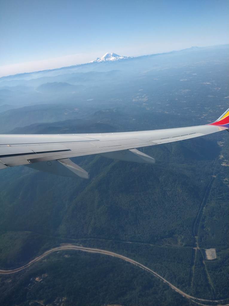 I wasn’t the only passenger, as three others were leaving from Sea-Tac that morning. One was from Winter Park, Florida, and had just completed a backpacking route around Mount Ranier over the course of a week. We had a lot to talk about. The shuttle arrived on time and soon I was going through the routine of getting ready to fly.