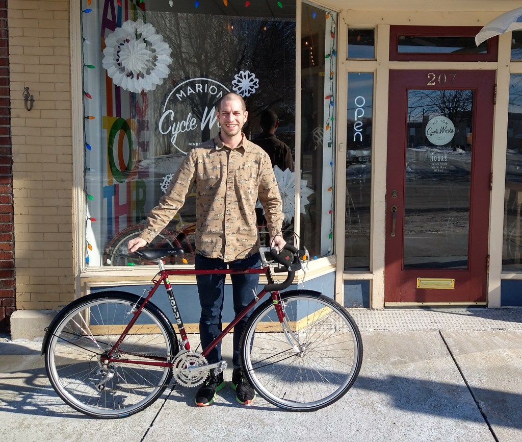 Michael Mathias owns Marion Cycle Works in Marion, Indiana. He’s an excellent mechanic and a great advisor on all things bicycle related. I brought Ishmael to the shop one Saturday morning and asked, “If you were going to ride this bike across the United States, what would you change?” A short time later I got an email listing his recommendations, which led me to doing something that never fails to make me happy: Buying more bike stuff. After a few weeks on the Internet a corner of one room looked like a bicycle shop, with Ishmael’s new parts shining like treasure. Following another trip to Marion to toss the hoard in Michael’s general direction, it was time to wait.